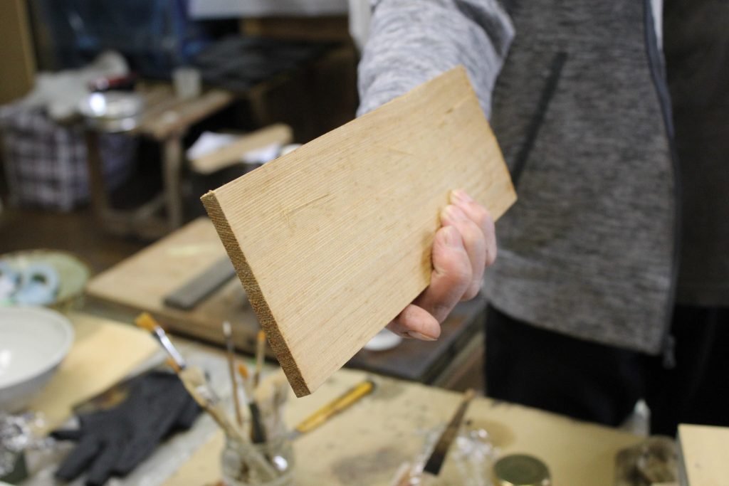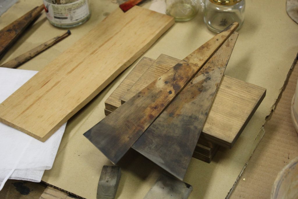 へらは自分で手作りするそうです。木から自分の手に合わせて作ることで、より使いやすい道具になるとのこと。
