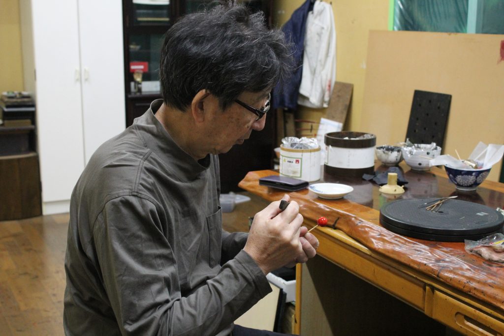これだけ、繊細な漆塗り。近松さんが使う道具にもこだわりがみられた。